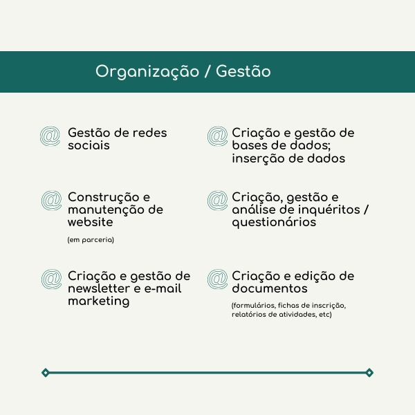 Na consultoria de comunicação irei analisar a presença digital do teu negócio; esclarecer as dúvidas / dificuldades que sentes na comunicação do mesmo; vamos discutir ideias; e vou propor algumas sugestões de caminho a percorrer!